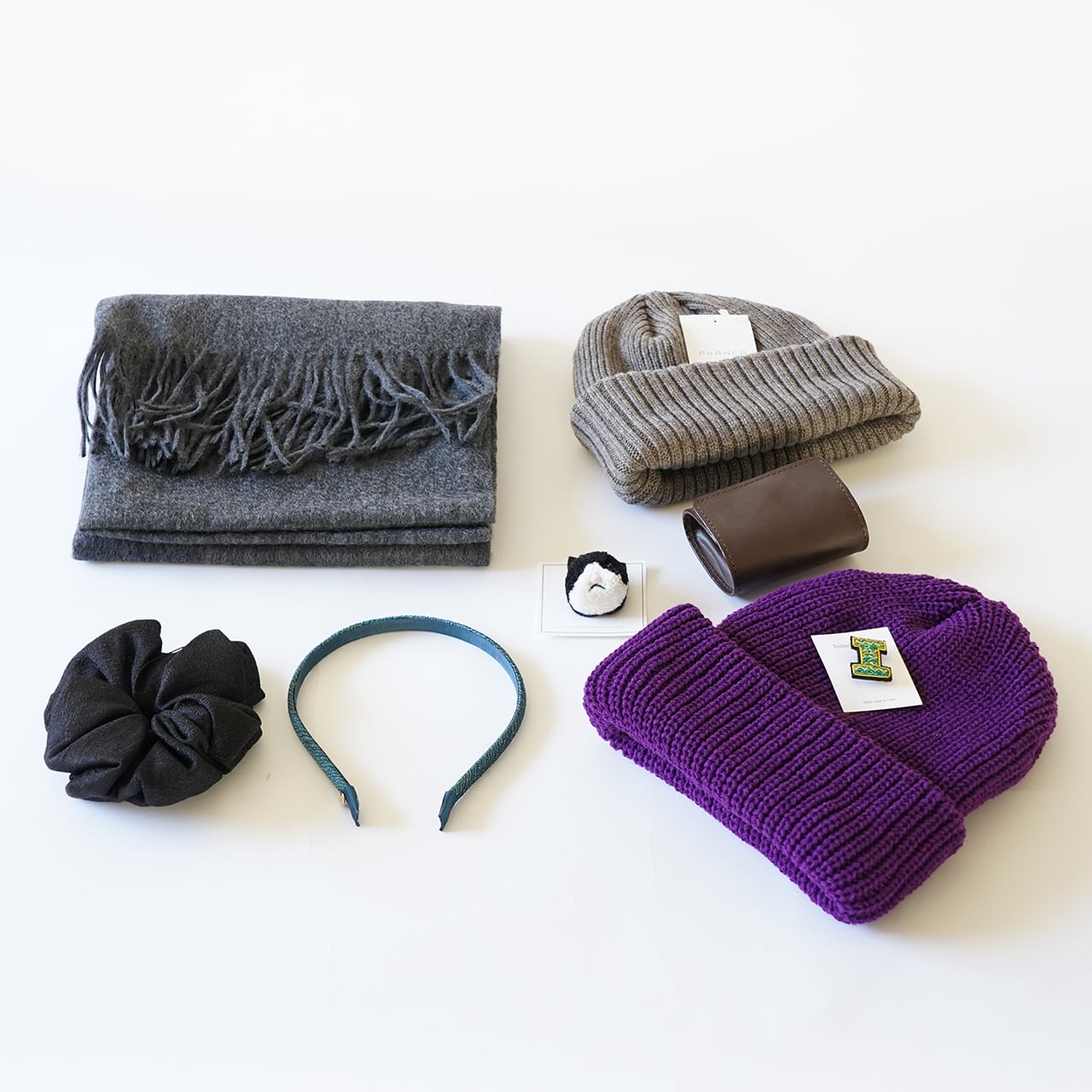 これからの寒くなる季節に向けて、ニットワッチとカシミアストール、ブローチ、シュシュ、ヘアアクセサリーなどを入れてあります。