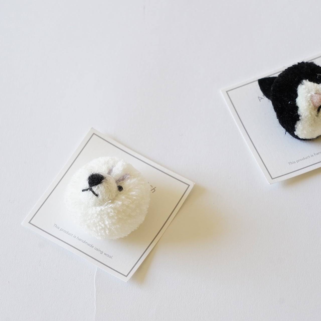 毛糸のポンポンを作る要領で土台をつくり、ハンドメイドで動物の顔に仕上げています。
