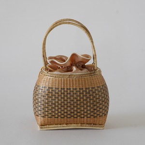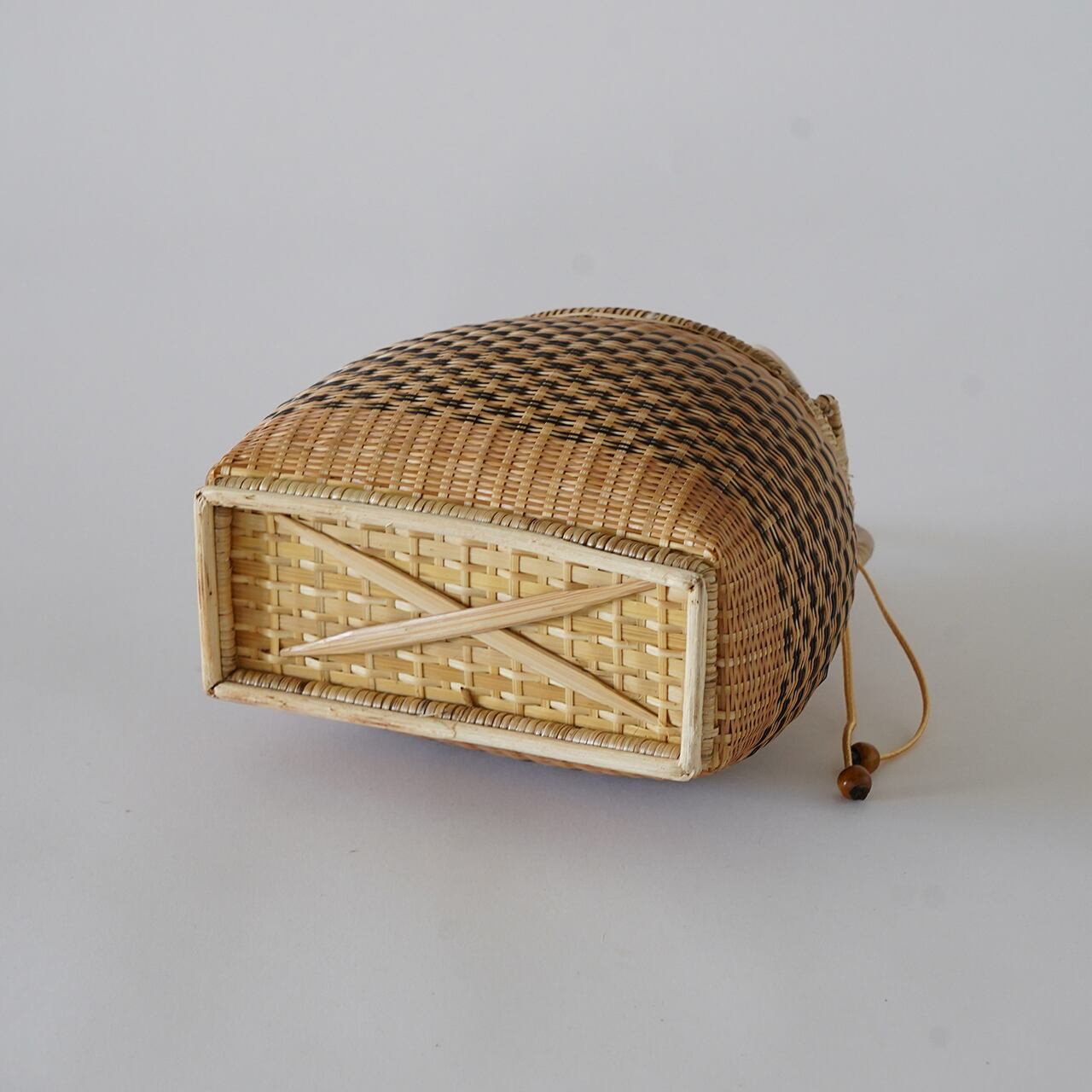 細く裂いた竹を緻密に編み込む伝統技法が使われており、繊細な細工が特徴的です。