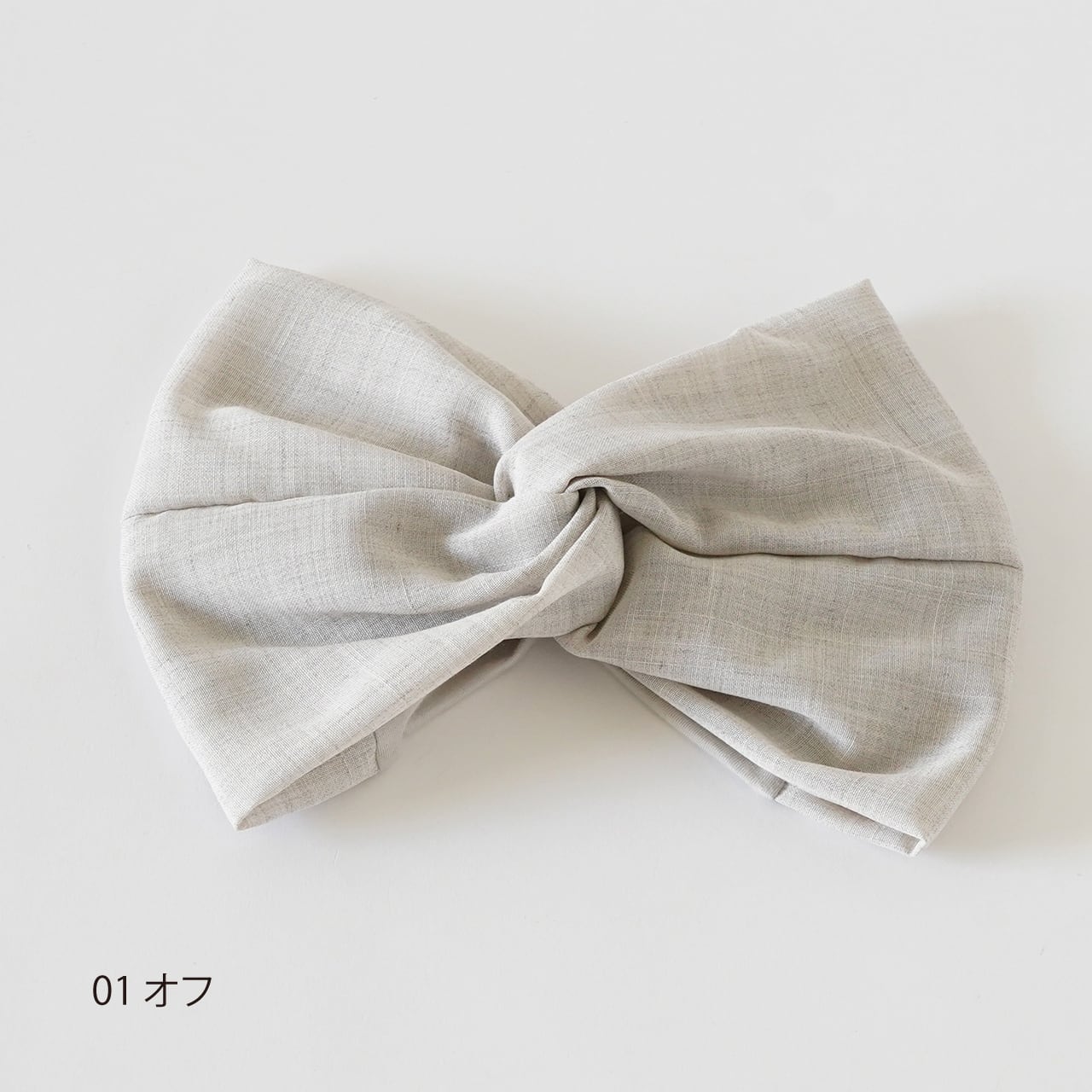 透け感のある麻調生地で制作した、ターバン風のヘアバンドです。 太めのシルエットと、ニット生地の組み合わせで、オンオフ問わずストレスなく着用できます。 麻調生地の為、シワになりにくくお手入れも簡単です。 サイズ:フリー 素材:本体 ポリエステル100% (手洗いにて洗濯可) ニット部分 綿50% レーヨン50% 生地:日本 原産国:中国 COLOR : 01 オフ 02 ブラック
