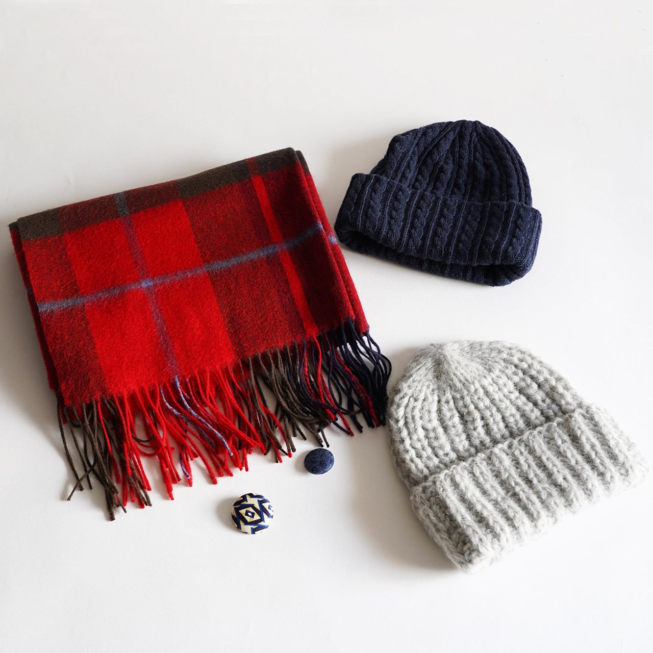 これからの寒くなる季節に向けて、ニットワッチと大判ストールをセットとした、暖かセットです。