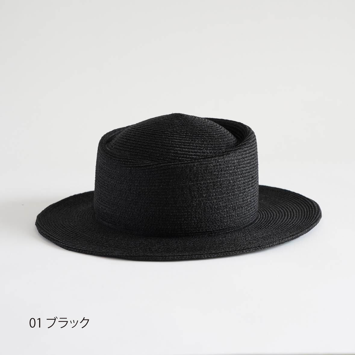 アシンメトリーのクラウンが特徴的なツバ広ハット。