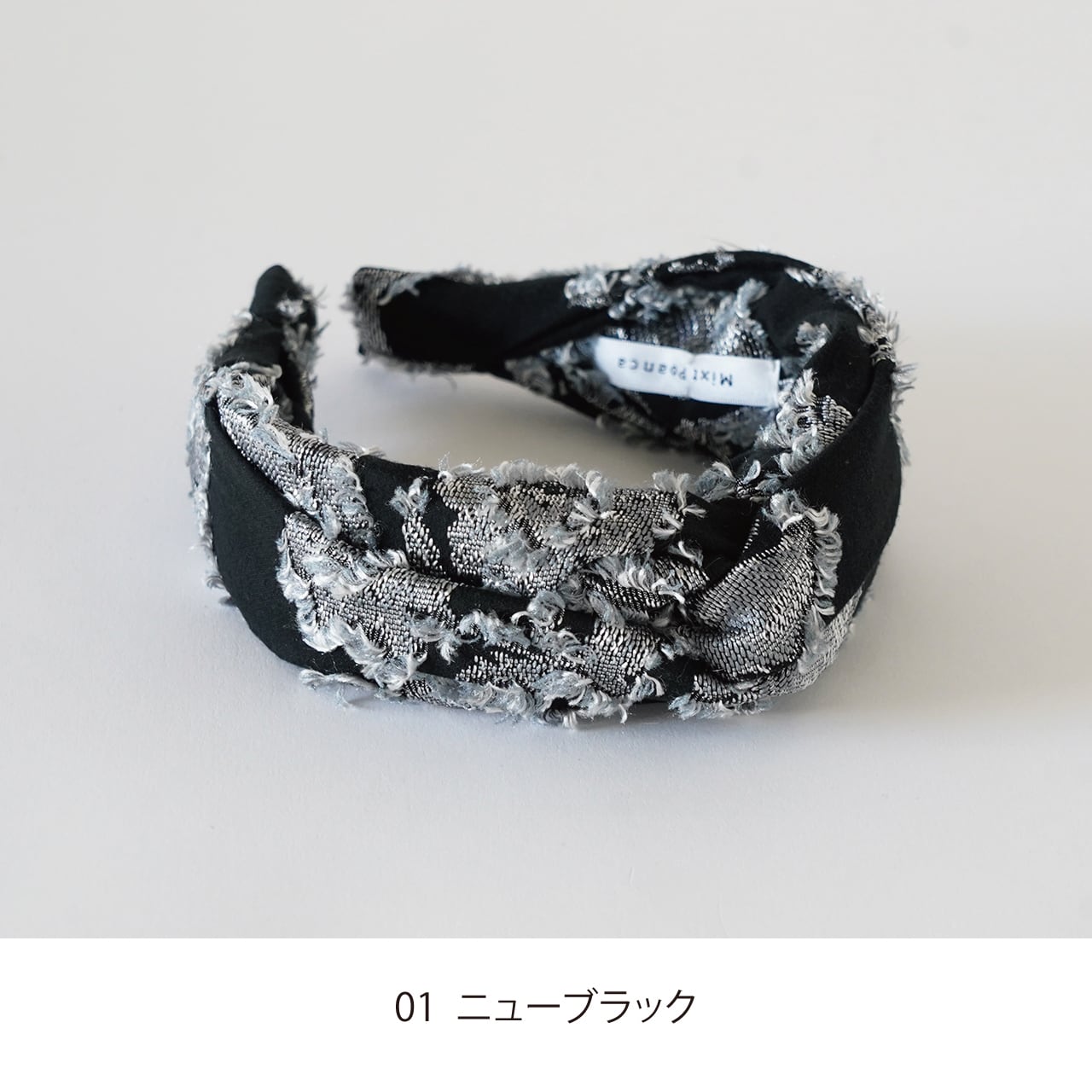 日本の技術、カットジャガード。 織り込まれた糸をあえてカットすることで生まれる、独特の毛足と立体感。 プリントでは表現できない奥行きのあるテクスチャが、光の加減で美しい陰影を描きます。 本体上部でねじったデザインと長時間の着用でも疲れにくい優しいホールド感にこだわりました。 オーガンジーの専用の袋がつきますので、ギフトにも最適です。 素材:綿45% キュプラ30% ポリエステル25% 生地:日本 原産国:中国 COLOR : 01 ニューブラック 02 サックス