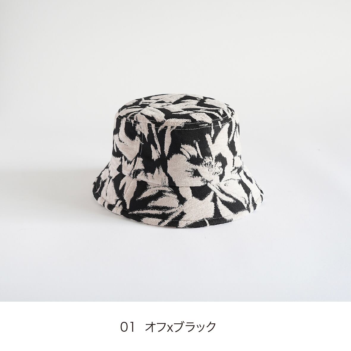 モール糸を使用したジャガード生地のバケットハットです。 ブリムの傾斜を強く、短くしたシルエットで制作しています。 生地は植物を筆で描いたようなグラフィックを、モール糸を使用したジャガードで表現していますので、生地に凹凸があり、なんとも素敵な表情です。 コーディネートのアクセントにいかがでしょうか? 素材:ポリエステル100% サイズ:頭周り 58cm(-2cm程度調整可能) 原産国:日本 COLOR : 01 オフxブラック 02 ネイビーxブラウン